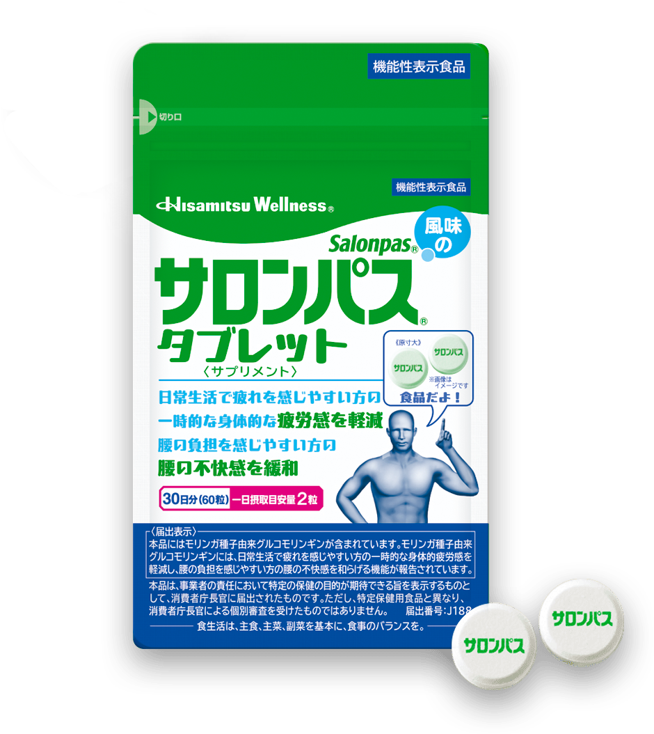 | 届出表示 | 本品にはモリンガ種子由来グルコモリンギンが含まれています。モリンガ種子由来グルコモリンギンには、日常生活で疲れを感じやすい方の一時的な身体的疲労感を軽減し、腰の負担を感じやすい方の腰の不快感を和らげる機能が報告されています。 |